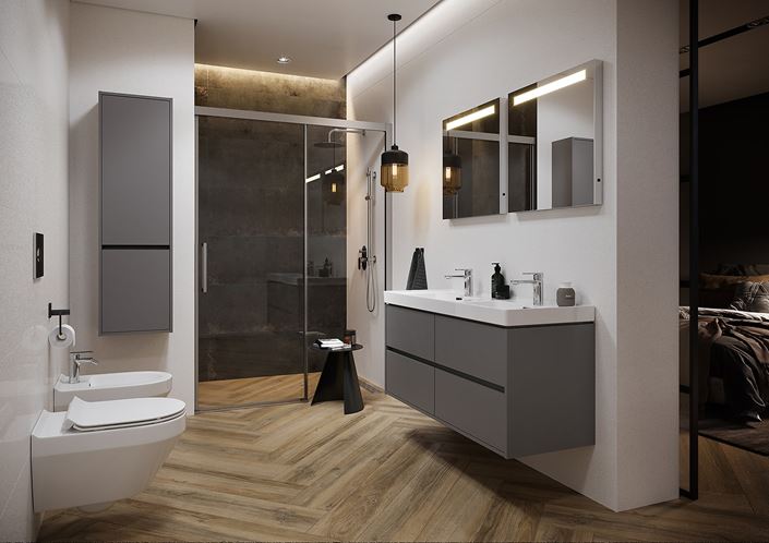Modularna kolekcja Larga oferuje kompleksowe rozwiązania do łazienki: kabiny prysznicowe, wanny, brodziki, armaturę i ceramikę łazienkową. Kolekcja świetnie sprawdza się zarówno w przestronnych łazienkach, jak i w mniejszych pomieszczeniach, gdzie liczy się optymalne wykorzystanie dostępnej przestrzeni.