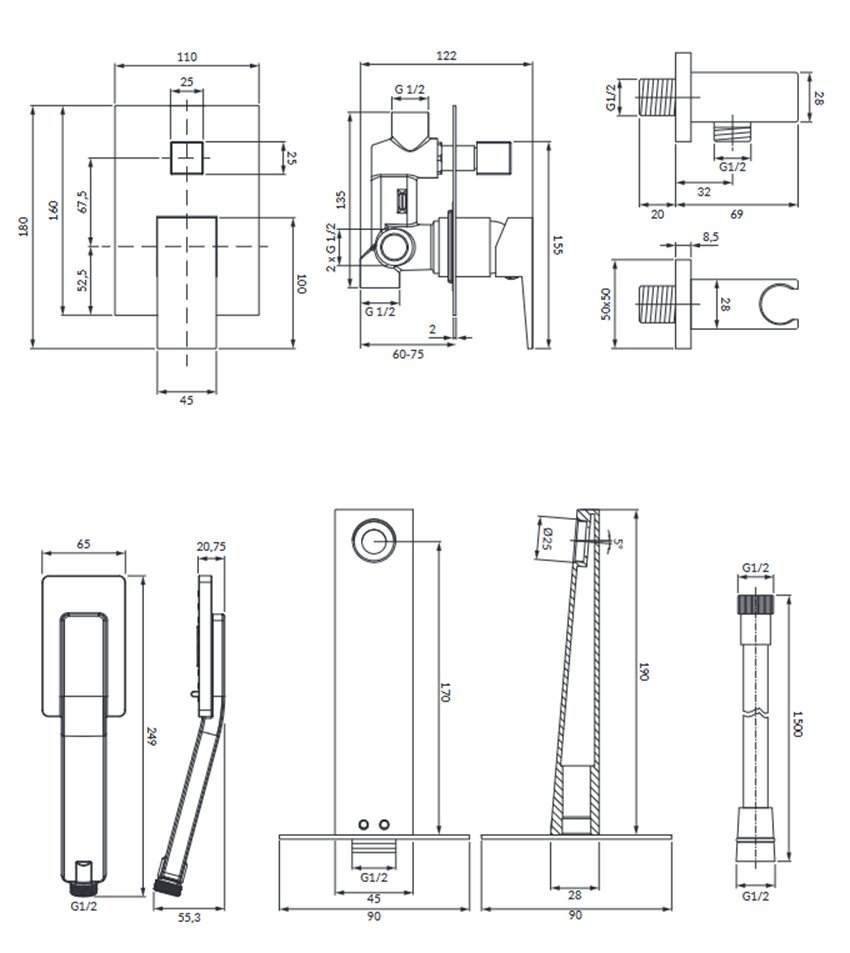 Zestaw wannowy podtynkowy z baterią, chrom połysk